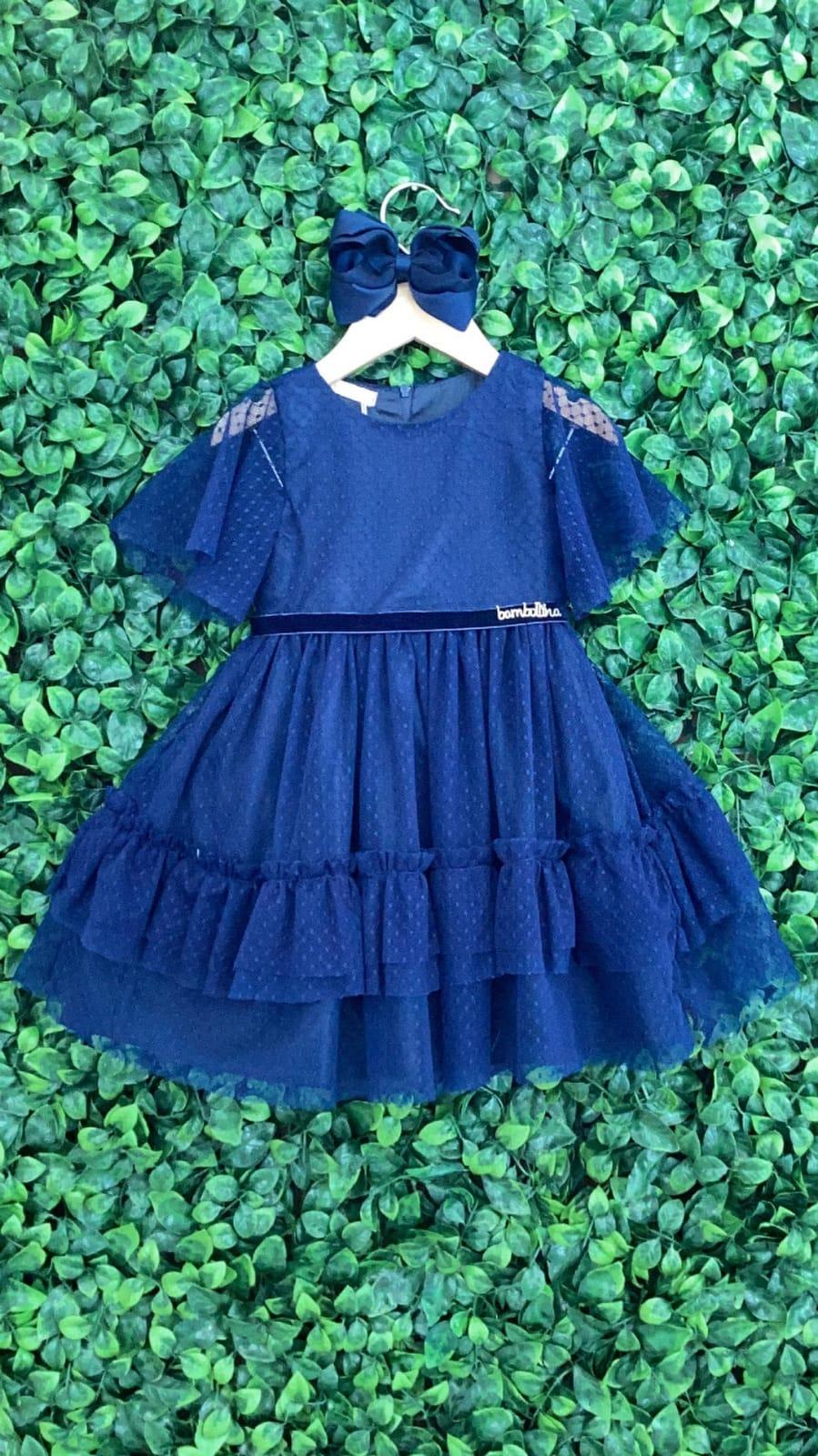 vestido azul marinho rodado de tule