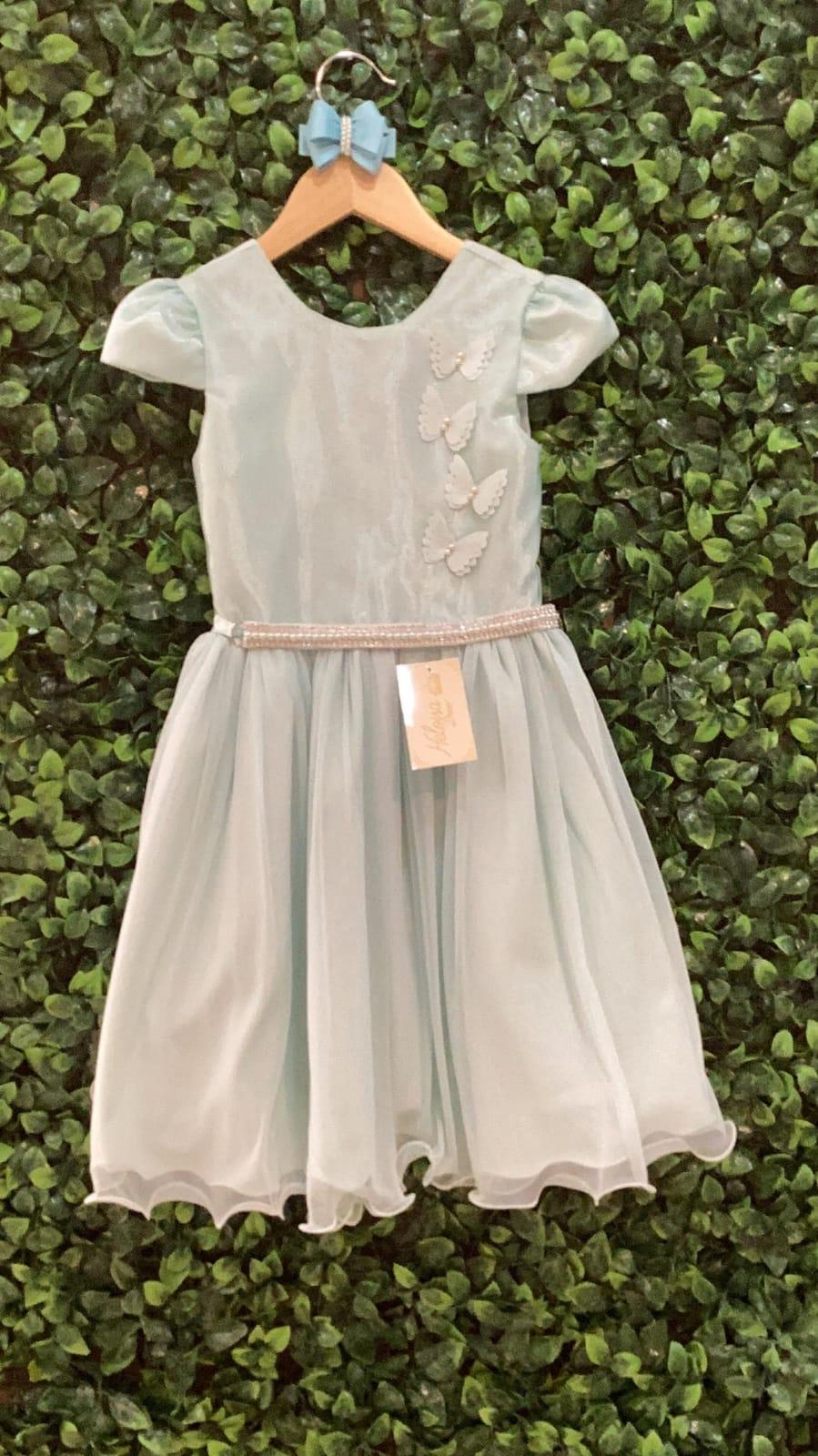 vestido verde com borboletinhas enfeitadas!