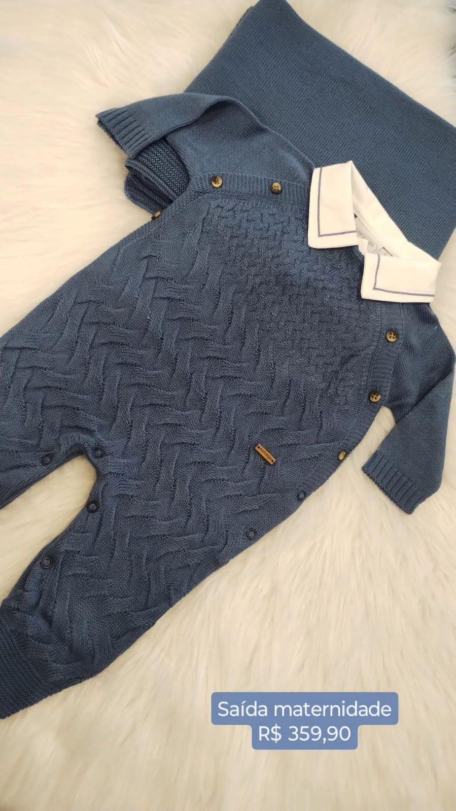 Saída maternidade azul marinho com detalhes de botões e uma gola linda!
