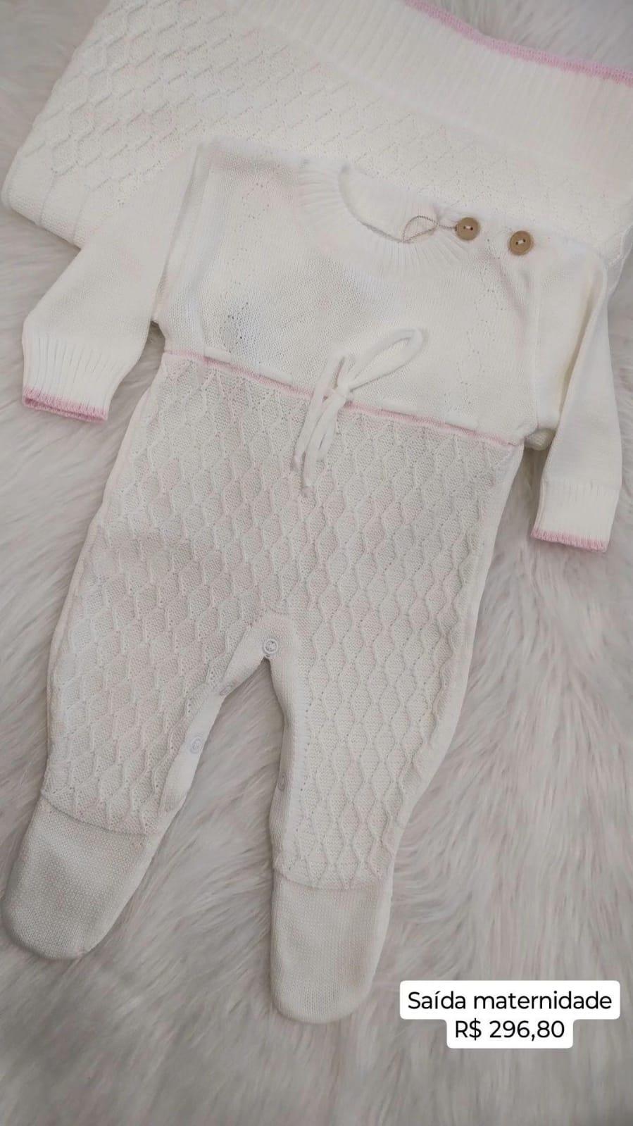 Saída maternidade na cor branca com rosa bebê, detalhes de botãozinho e laço na cintura!