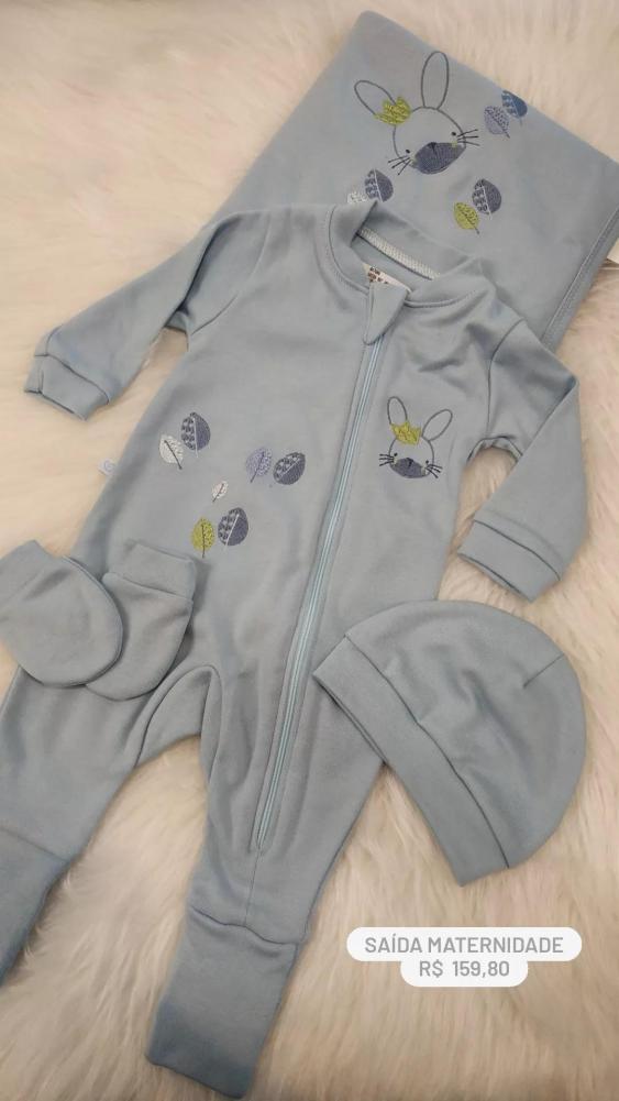 Saída maternidade azul bebê com estampas de coelhinhos!