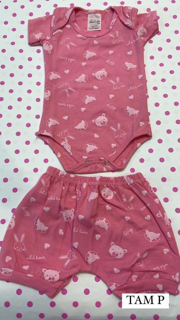 Olha que lindo esse conjunto de Body rosa com estampa de animais!