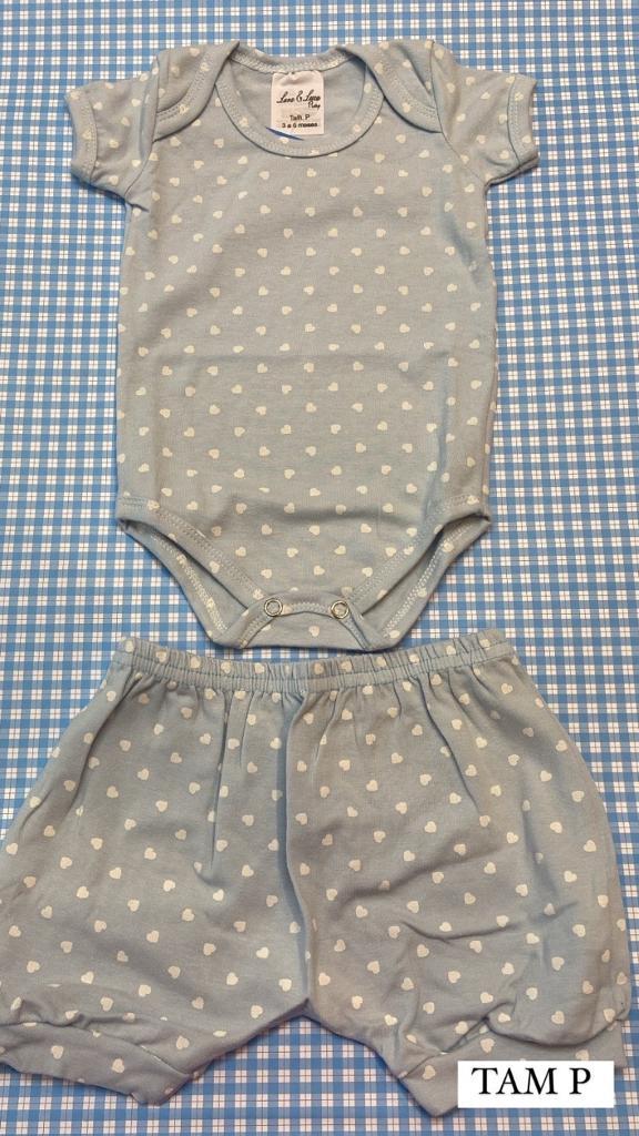 conjunto de Body azul com detalhes de coração super fofo!