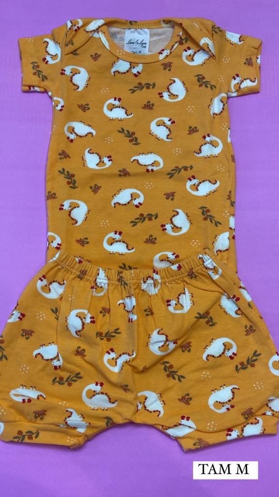 conjunto de Body na cor laranja com estampas de dinossaurinho!