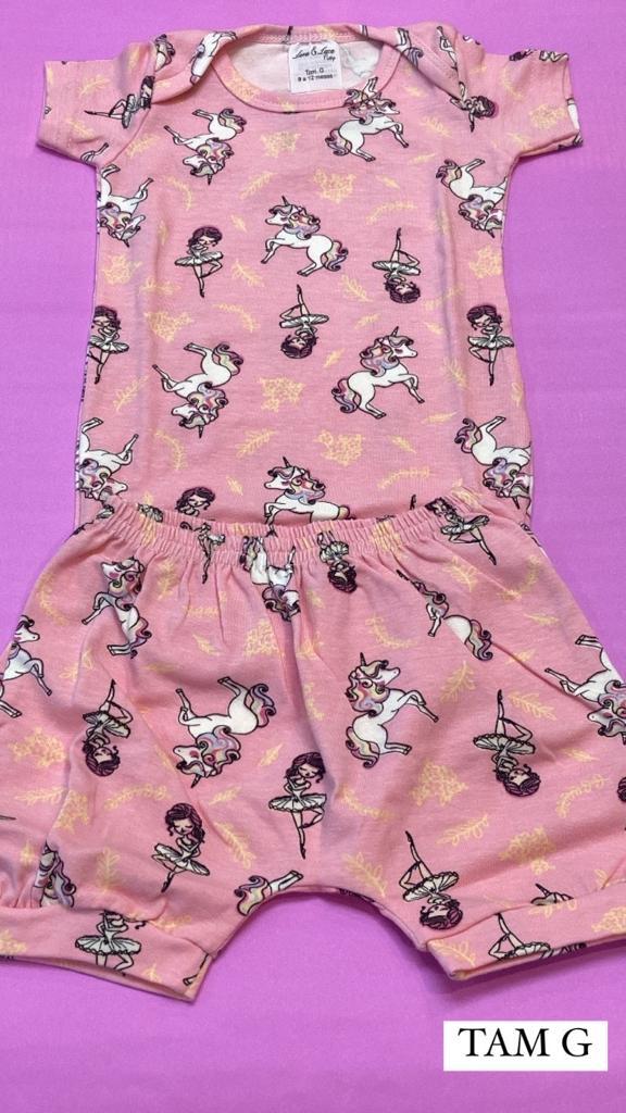 Conjunto de Body rosa com estampa de unicórnio!